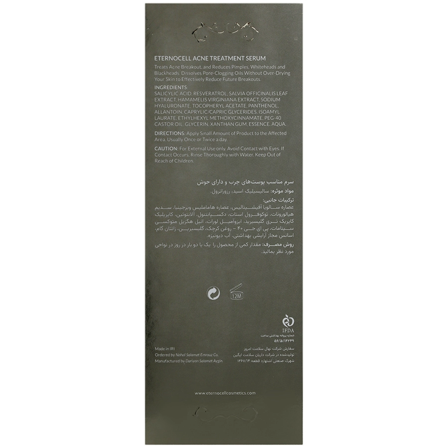 - سرم پوست چرب و جوشدار اترنوسل، حاوی سالیسیلیک اسید و رزوراترول