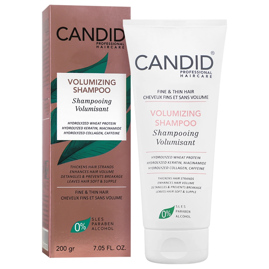 شامپو حجم دهنده ظاهری موهای نازک کاندید با فرمولاسیون سبک و فاقد سیلیکون، حجم واقعی و ماندگار به موهای شما می‌بخشد. این شامپو برای کسانی مناسب است که موهای نازک، کم پشت یا بی حالت دارند و به دنبال افزایش حجم و لطافت موهای خود هستند.
