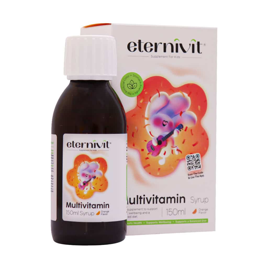 - شربت مولتی ویتامین اترنیویت، مناسب جهت کمک به تأمین ویتامینهای مورد نیاز بدن