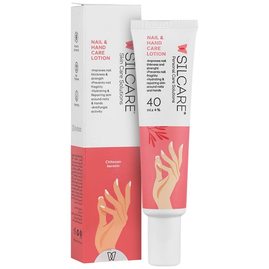 لوسیون ناخن Silcare حاوی چیتوسان است که در تقویت و افزایش استحکام ناخن نقش بسزایی داشته و نیز می تواند بیماری های قارچی در ناخن ها را درمان کرده و از بروز مجدد آنها پیشگیری نماید. لوسیون ناخن سیلکر با خاصیت مرطوب کنندگی خود که ناشی از وجود روغن آرگان در آن است، موجب لطافت و نرمی پوست اطراف ناخن و دست شده و مانع از پوسته ریزی و خشکی آن می گردد.