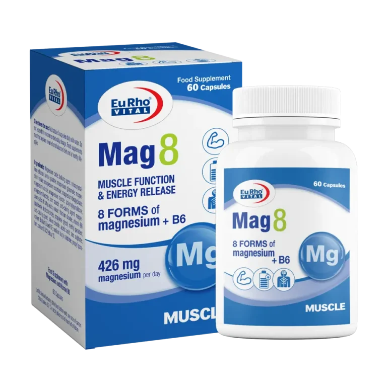 کپسول مگ 8 یوروویتال حاوی 8 ملح مختلف منیزیم (بیسگلایسینات، سیترات، مالات، لاکتات، تائورات، اکساید، گلوکونات و آسکوربات) بههمراه ویتامین B6 است که به تقویت عملکرد سیستم عصبی، رفع گرفتگیهای عضلانی، افزایش توان جسمی و بهبود خلقوخو کمک میکند. وجود 8 ملح متنوع منیزیم در این مکمل باعث جذب بهتر و اثربخشی بالاتر منیزیم در ابعاد مختلف سلامتی میشود.