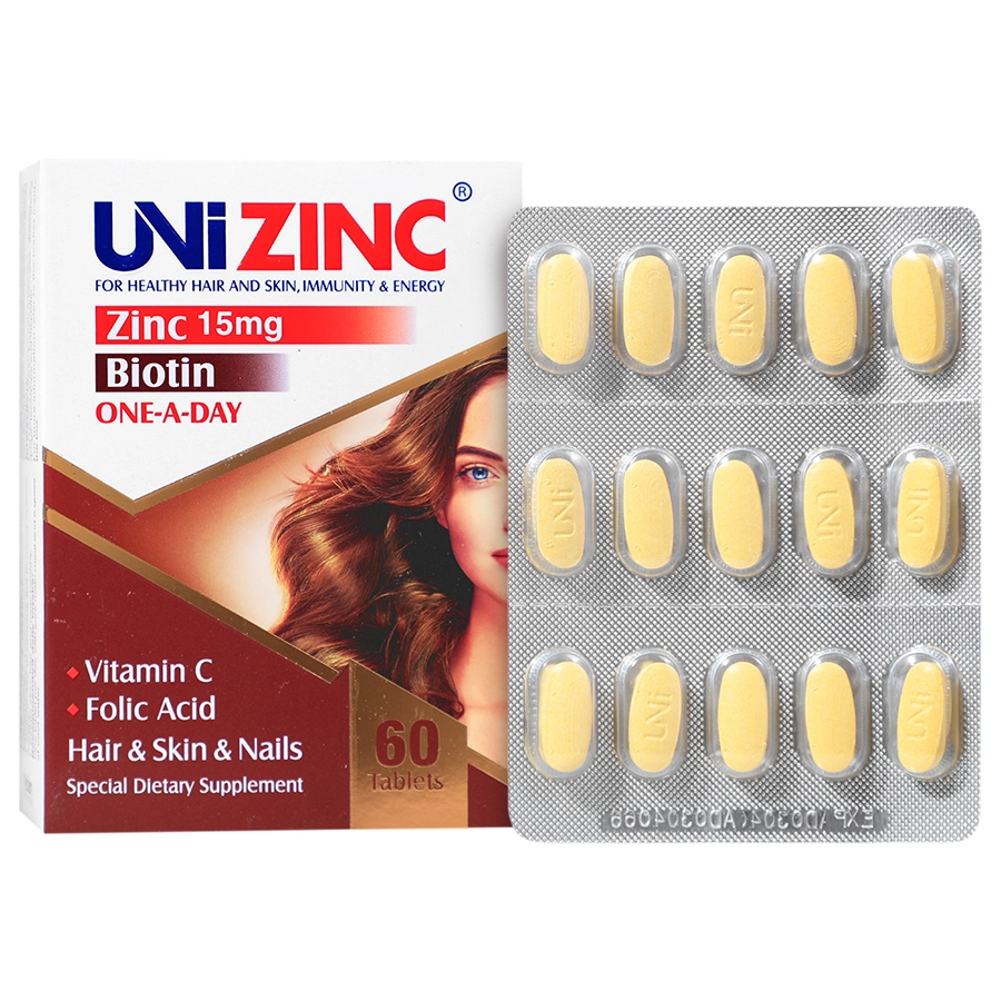 یونی زینک به علت تحت لیسانس بودن به عنوان قرص زینک خارجی نیز شناخته شده است. برخی از متخصصان عقیده دارند کمبود این ماده معدنی میتواند موجب وخامت در ساختار پروتئینی که فولیکول مو را تشکیل میدهد شود و با تضعیف این فولیکولها ریزش مو آغاز خواهد شد. خوشبختانه قرص unizinc نقش مهمی در تولید DNA و RNA دارد که جهت تقسیم طبیعی سلولهای فولیکول مو لازم هستند و موجب رشد موهای سالم میشوند. همچنین این قرص به علت متعادل نگه داشتن سطح هورمون قادر است از ریزش مو جلوگیری کند و برای از بین بردن شوره سر هم موثر واقع شود.