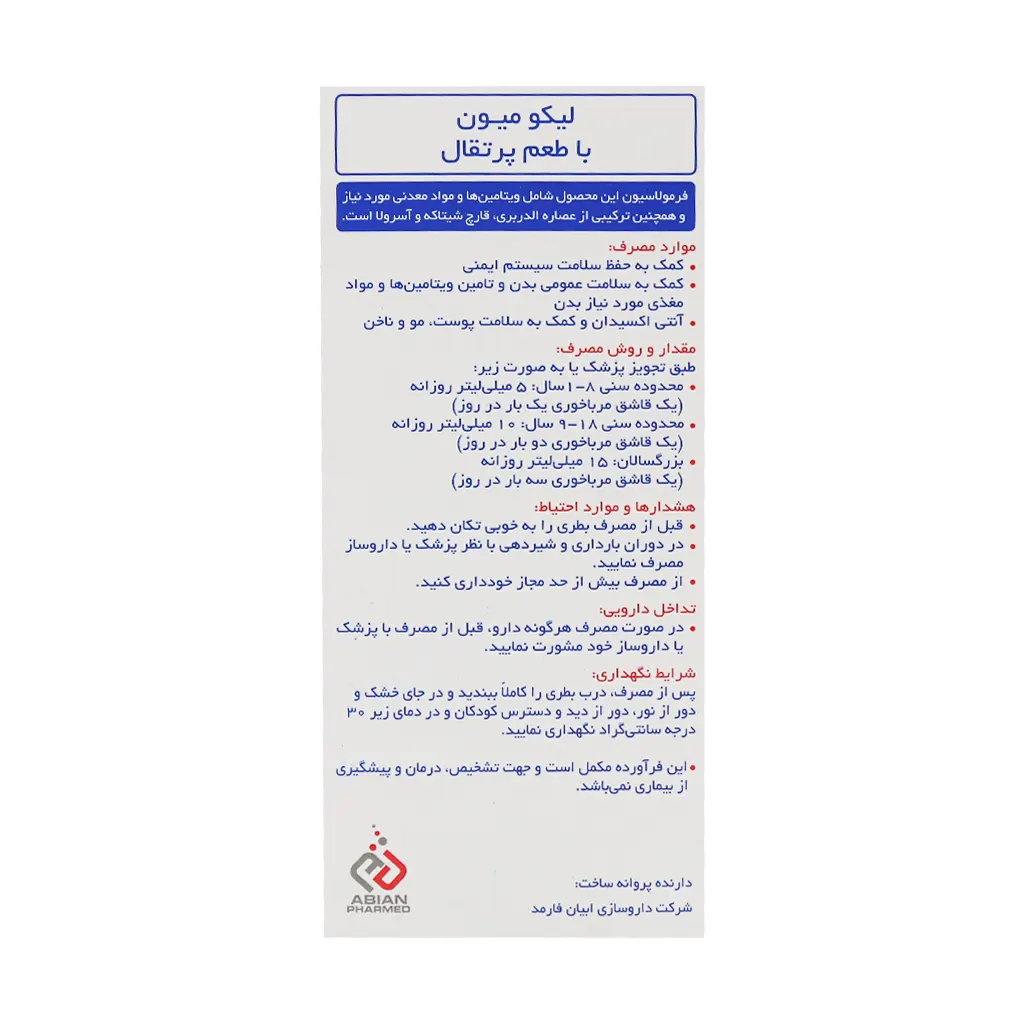 ویژگی های شربت لیکو میون ابیان فارمد