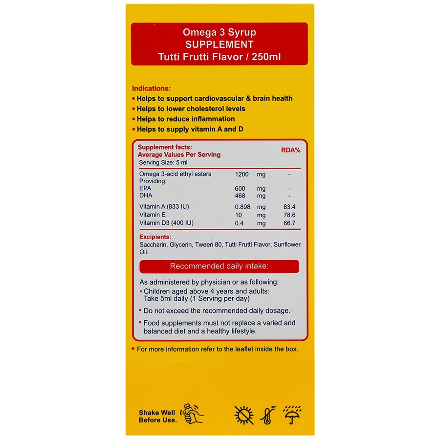 - شامل امگا 3، ویتامین D، A و E