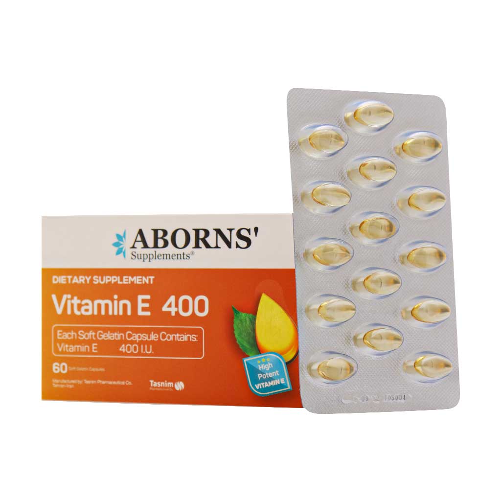 کپسول ویتامین E 400 واحد ابورنز نیاز روزانه بدن به ویتامین ای را برطرف نموده و از عوارض کمبود آن جلوگیری می‌نماید. بعلاوه فرم ژلاتینی این محصول بلع آن را آسان و ایمنی آن را افزایش داده است.