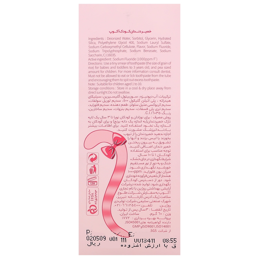 ترکیبات موثر خمیر دندان کودک آکوپ Acop