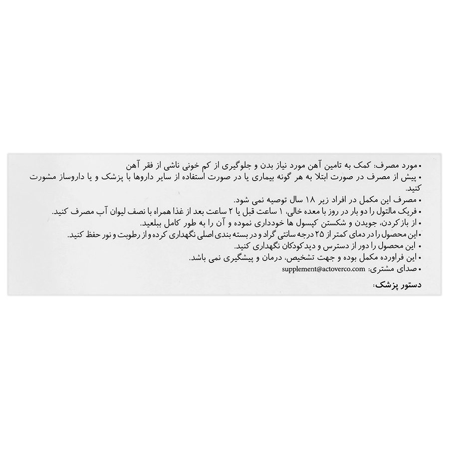 نحوه مصرف کپسول آهن اکتوویت فریک مالتول اکتوورکو: