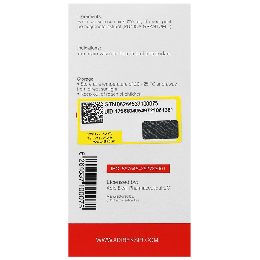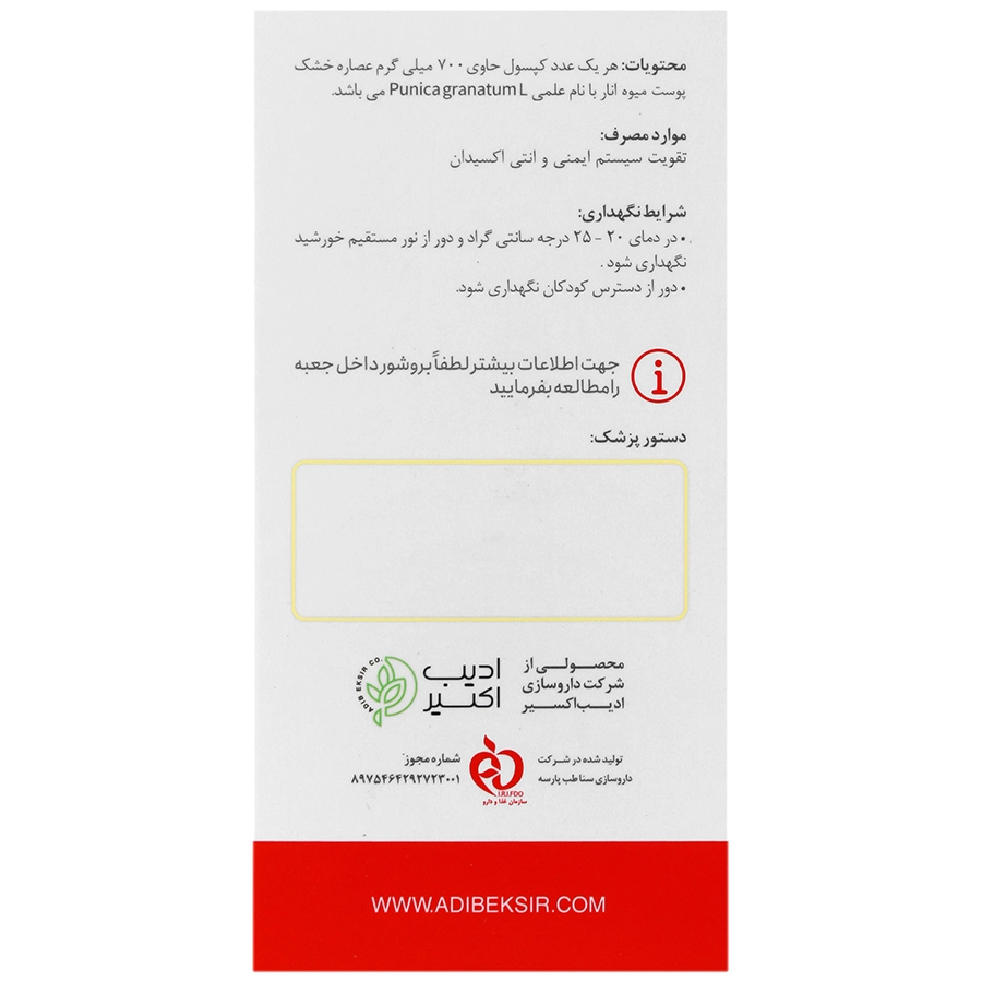 | عصاره خشک انار(پونیکا گرانتوم) | 500mg | ** |