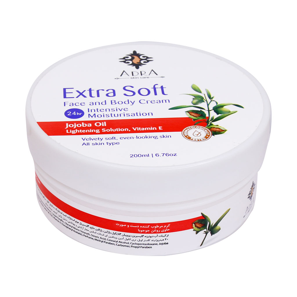کرم صورت و بدن حاوی روغن جوجوبا آدرا ۲۰۰ میلی لیتر