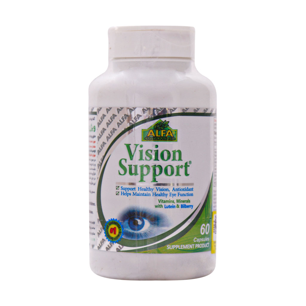 کپسول ویژن ساپورت آلفا ویتامینز یک مکمل غذایی حاوی ویتامین، مواد معدنی، لوتئین و بیلبری بوده که با خواص آنتی اکسیدانی به حفظ سلامت چشمها و بینایی کمک میکند. همچنین با دوز بالای زینک جهت بهبود عملکرد سیستم ایمنی موثر عمل مینماید. این محصول علاوه بر بهبود بینایی، از خشکی چشم نیز جلوگیری میکند. در ترکیبات Vision Support لوتئین دیده میشود که با افزایش چگالی رنگدانه ماکولا، از دژنراسیون ماکولا (تخریب لکه زرد) جلوگیری میکند و کاهش خطر ابتلا به آب مروارید و خستگی چشم را به همراه دارد. شایان ذکر است برای اطلاع از قیمت مکمل بینایی و خرید آن میتوانید به دسته بندی مربوطه در سایت داروخانه آنلاین مثبت سبز مراجعه کنید.