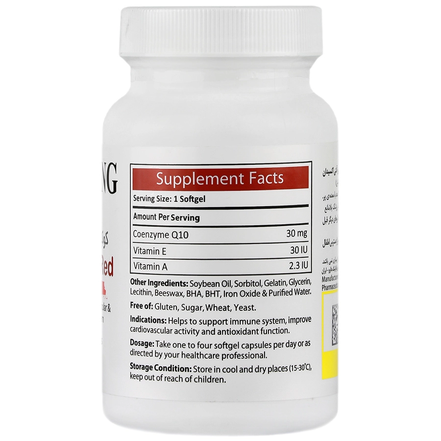 سافت ژل کوکیوتن قرمز 30 میلی گرم آنتی ایجینگ با خاصیت آنتی اکسیدانی باعث کمک به سلامت قلب و عروق، افزایش قوای جنسی، تقویت سیستم ایمنی و ارتقا سطح انرژی بدن میشود.