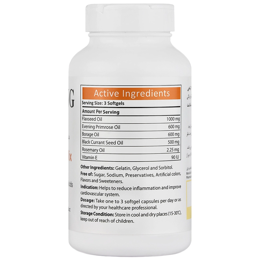 سافت ژل سوپر میکس آنتی ایجینگ حاوی امگا 3، 6 و 9 گیاهی بوده و کاهش ناراحتیهای قلبی عروقی و پر فشاری خون را به دنبال دارد. به علاوه این محصول با بهرهمندی از عصارههای گیاهی موجب آرامش اعصاب، بهبود دردهای قاعدگی و کاهش التهاب در اگزما میشود.