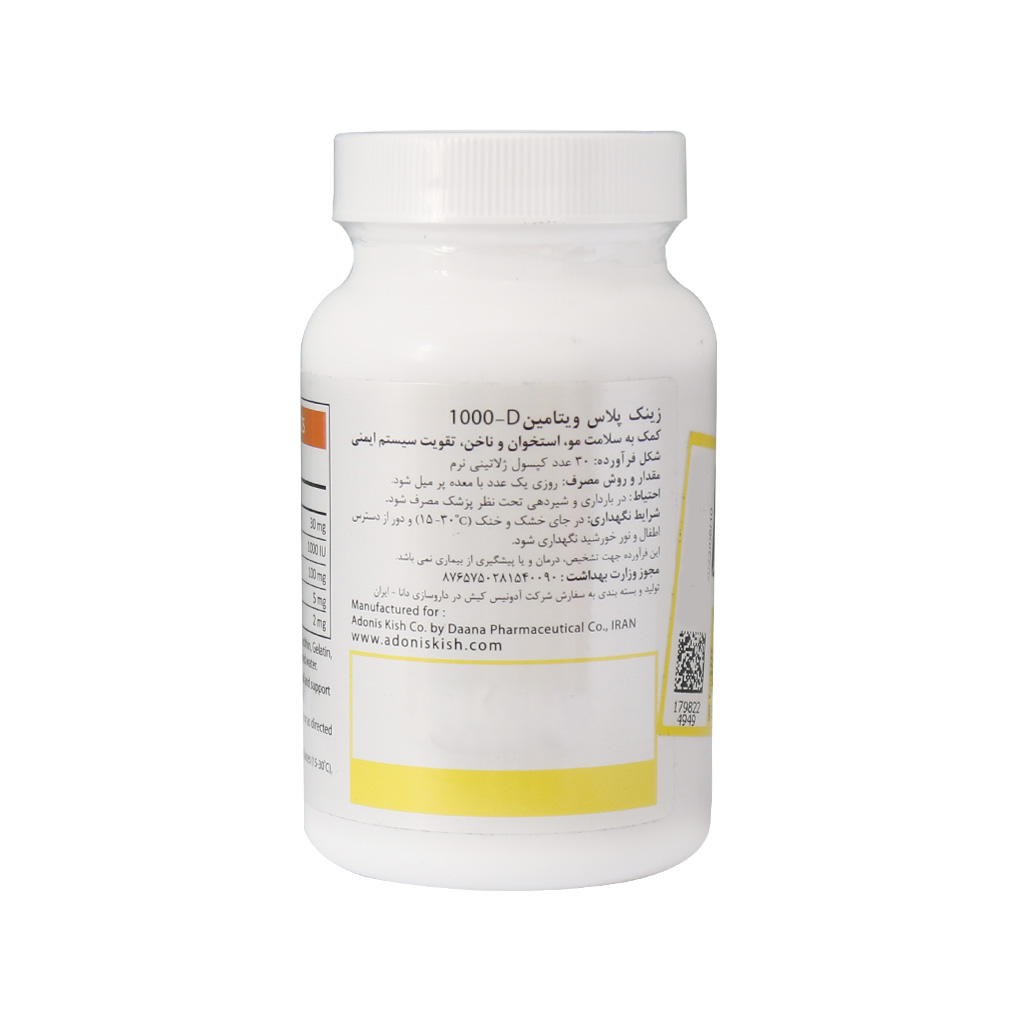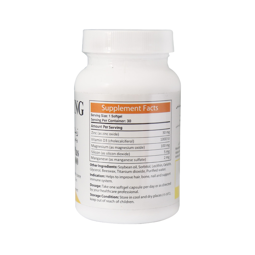 ترکیبات موثر سافت ژل زینک پلاس ویتامین D 1000 آنتی ایجینگ