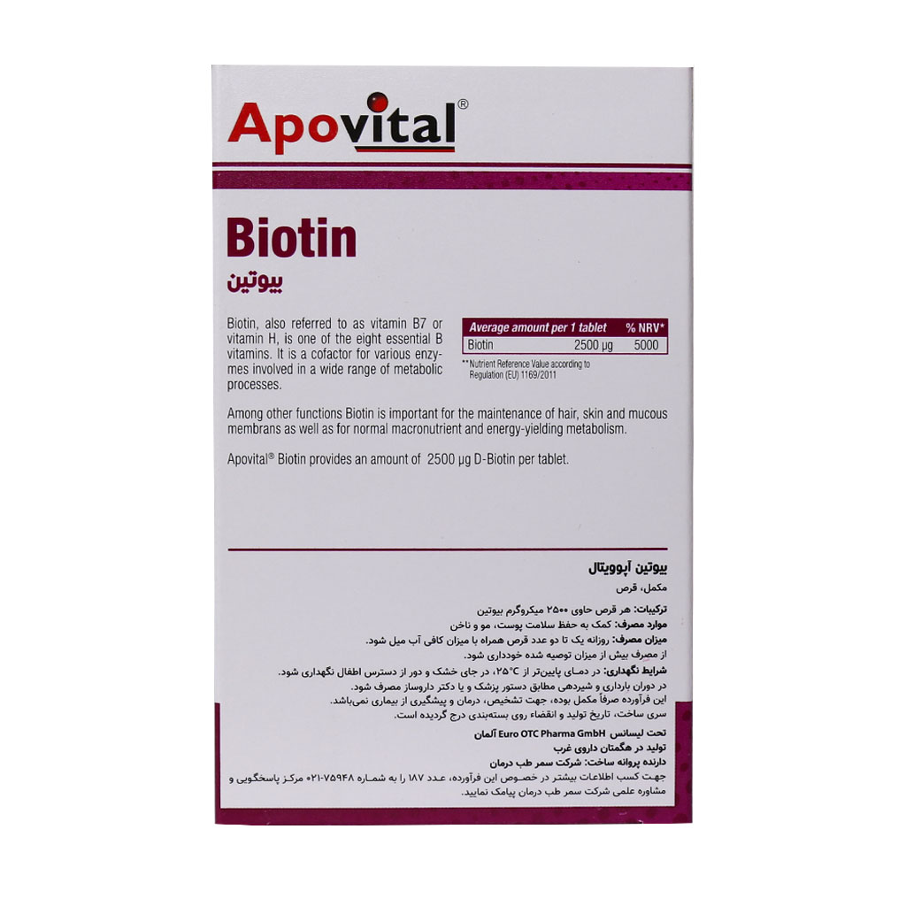 قرص بیوتین 2500 میکروگرم آپوویتال 30 عدد
