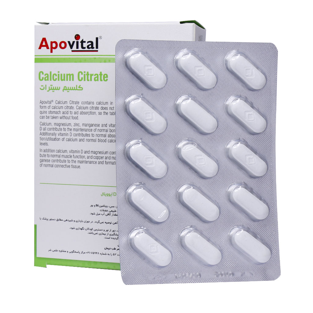 قرص کلسیم سیترات همراه با منیزیم زینک و ویتامین D آپوویتال 30 عددی