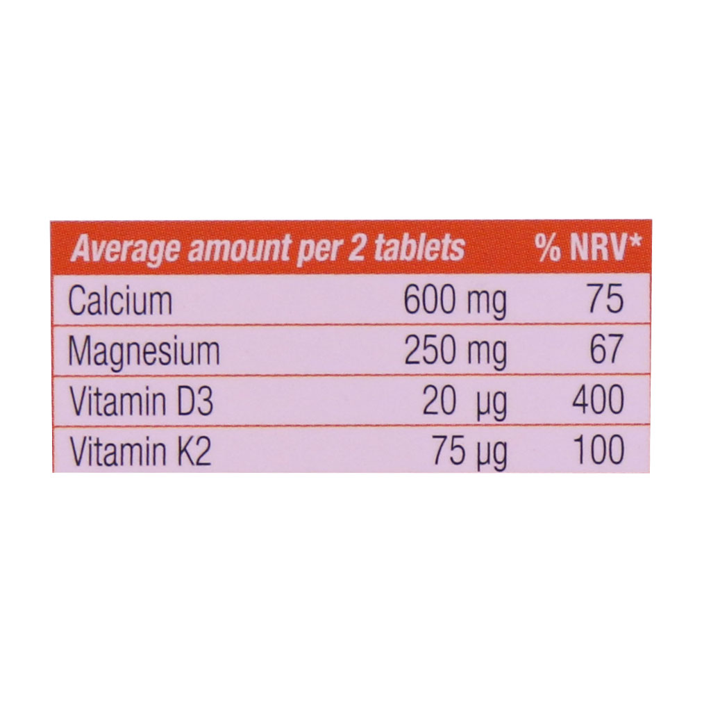 • حاوی کلسیم، منیزیم، ویتامین د3 و کا2