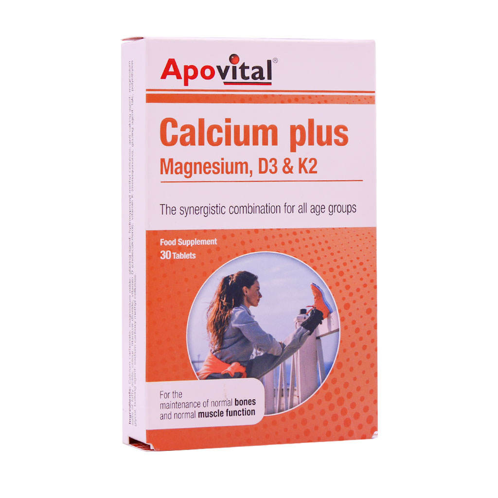 کلسیم یکی از مینرال ضروری برای بدن است که نبود آن منجر به پوکی استخوان و عوارض خطرناکی را در پی دارد. کلسیم پلاس آپوویتال به همراه مینرال منیزیم و ویتامین‌های D3 و K2 به داشتن استخوان‌هایی مستحکم و متراکم کمک کرده و از پوکی استخوان پیشگیری می‌کند. تامین این مینرال از طریق رژیم غذایی و مواد غذایی مانند لبنیات و … امکان پذیر است اما در صورت کمبود مجدد آن می‌توان از قرص کلسیم استفاده نمود.
