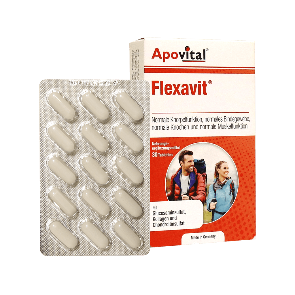 قرص فلکساویت آپوویتال به حفظ سلامت و بهبود عملکرد و فعالیت مفاصل، استخوان، عضلات بدن و بافتهای پیوندی مثل غضروفها کمک میکند. همچنین با جلوگیری از فرسایش غضروف و کمک به تشکیل و ترمیم کلاژن، در افزایش انعطاف پذیری و عملکرد صحیح مفاصل و همچنین کاهش درد تاثیر بسزایی دارد. این قرص شامل انواع ویتامینها از جمله ویتامین D، ویتامین E، ویتامین C، ویتامین B12، عصاره جینجر، املاح معدنی مورد نیاز بدن و کلاژن است. میتوان گفت این قرص با ترکیبات موثرش بهترین قرص ضد درد مفاصل است.