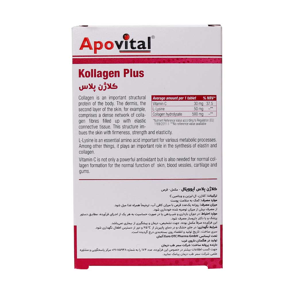 قرص کلاژن پلاس آپوویتال حاوی ویتامین C و لیزین 30 عدد
