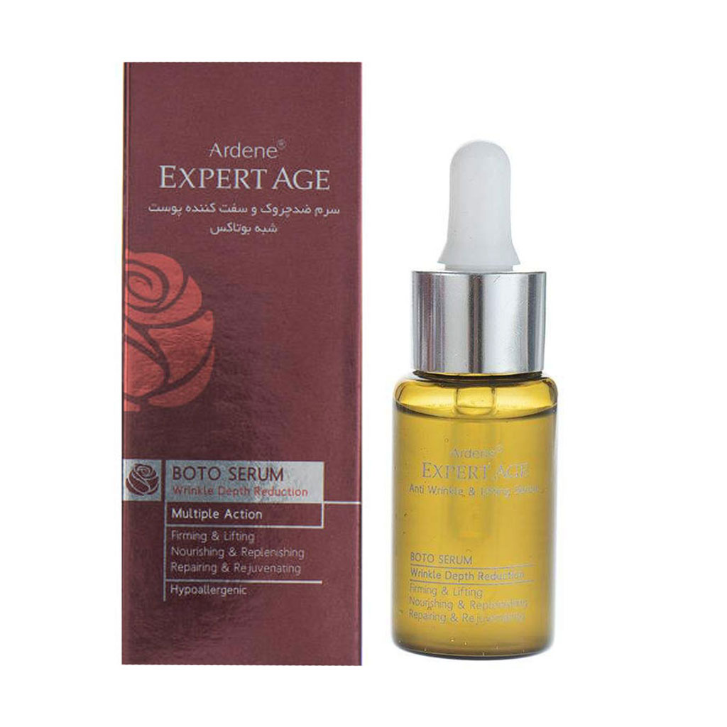 سرم ضد چروک و سفت کننده پوست آردن مدل اکسپرتیج برای افراد بالای 40 سال مناسب است و شبیه بوتاکس عمل می‌کند. این محصول با قدرت نفوذ بالا و جذب سریع به ریلکس سازی ماهیچه‌های صورت کمک می‌کند.
