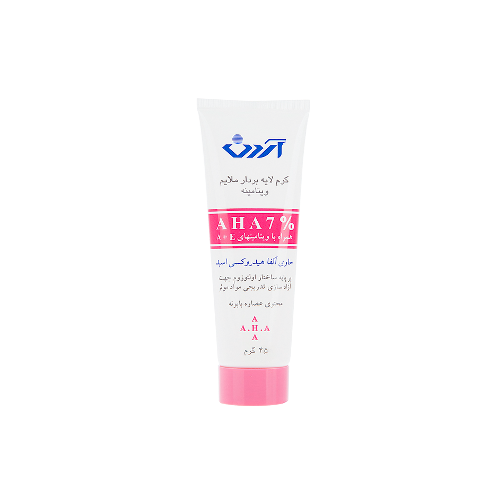 کرم لایه بردار ویتامینه AHA 7 درصد آردن محتوی7% اسید گلیکولیک (آلفا هیدروکسی اسید) است. این کرم لایه شاخی پوست را از بین می برد. و با ساختمان امولسیونی اولئوزوم و آزاد سازی تدریجی مواد موثر برای لایه برداری ملایم سلول های مرده و فرسوده موثر عمل می کند. همچنین به رفع تدریجی لک های قهوه ای پوست و لک های ناشی از جای جوش، اصلاح و اپیلاسیون کمک می کند. کرم لایه بردار ویتامینه AHA7% آردن با زدودن لایه های چربی سطح پوست و محو نمودن آثار بجای مانده از انواع آکنه و جوش های پوستی، عمق چروک های سطح پوست را کاهش می دهد.