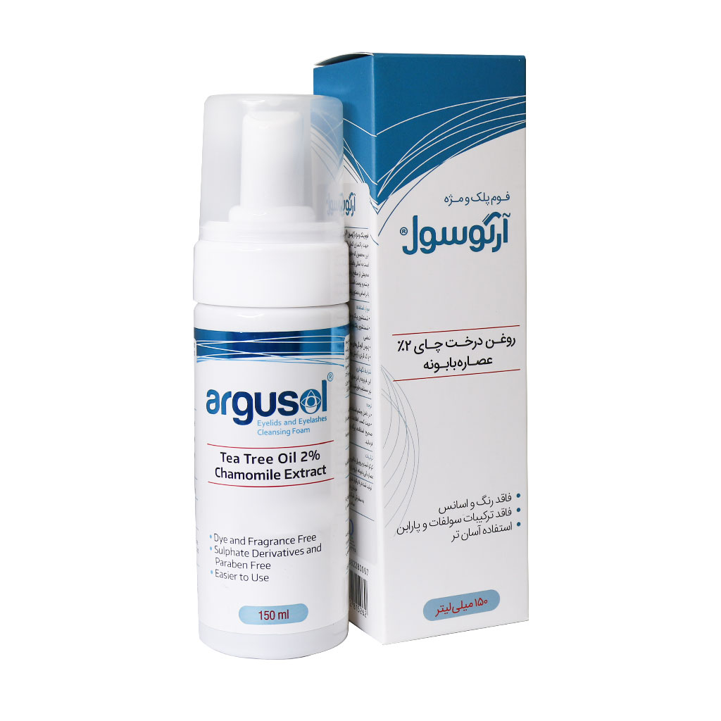 فوم شستشو پلک و مژه آرگوسول یک محصول مناسب حاوی روغن درخت چای و بابونه جهت پاکسازی کامل پلکها و مژهها است.