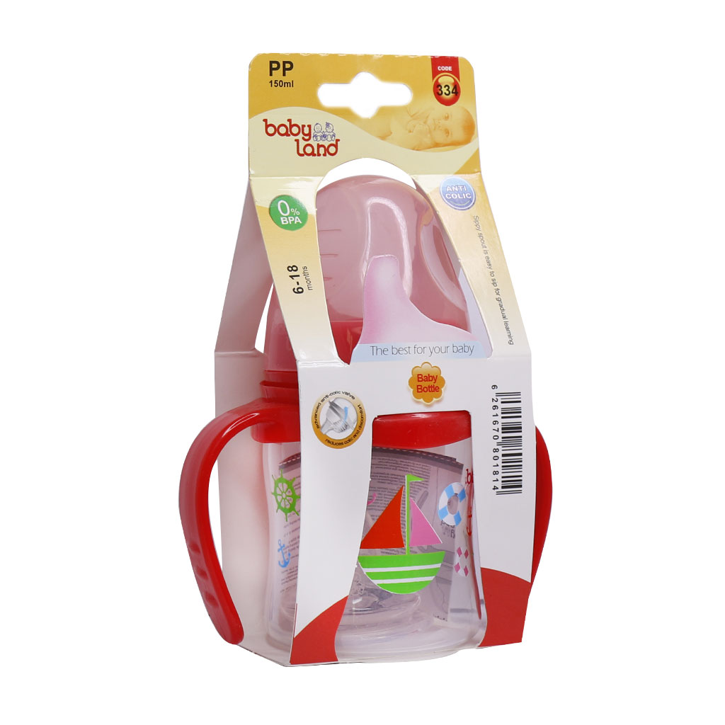 اگر به دنبال یک شیشه شیر خوب و با کیفیت برای نوزادان بالای شش ماه هستید، پیشنهاد ما به شما آبمیوه خوری بیبی لند کد 334 مناسب 6 تا 18 ماه است. این شیشه شیر 150 میلی لیتر دارد و دسته دار بودن آن به کودک احساس استقلال در غذا خوردن را منتقل میکند. این دستههای پلاستیکی فاقد لغزش که در اطراف شیرخوری بی بی لند قرار دارد قابلیت جدا شدن دارد و زمانی که بخواهید میتوانید به راحتی آن را از از روی بدنه بطری خارج کنید.