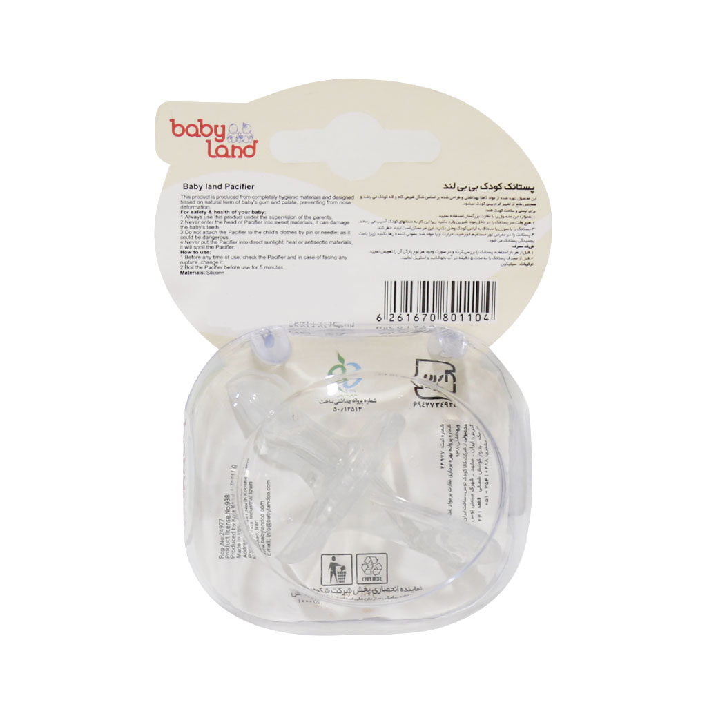 پستانک ارتودنسی بیبی لند از بهترین مواد سیلیکونی ساخته شده و کاملا متناسب با کام و لثه کودک است. این نوع پستانک از کج شدن دندانها، مشکلات بایت و دیگر مشکلات ارتودنسی جلوگیری میکند.