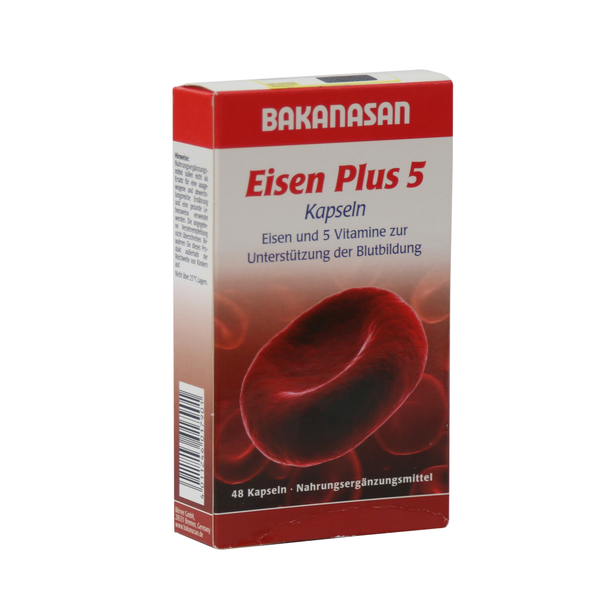 کپسول آیزن پلاس 5 باکاناسان با تامین نیاز روزانه بدن به انواع ویتامین ها و املاح معدنی از ایجاد کم خونی جلوگیری می نماید. آیزن پلاس 5 حاوی آهن، ویتامین B12، B6، B2، B1 و ویتامین C است. این کپسول از کم خونی و آنمی فقرآهن در دوران قاعدگی خانم ها پیشگیری می نماید. به دلیل فرم ژلاتین (Soft Gelatin) بلع و هضم آسان تری نسبت به محصولات مشابه دارد. به دلیل نوع خاص ملح آهن، جذب و قدرت اثر بالاتری نسبت به محصولات مشابه دارد. آیزن پلاس 5 باکاناسان، تنها آهن سافت ژل موجود در بازار است.