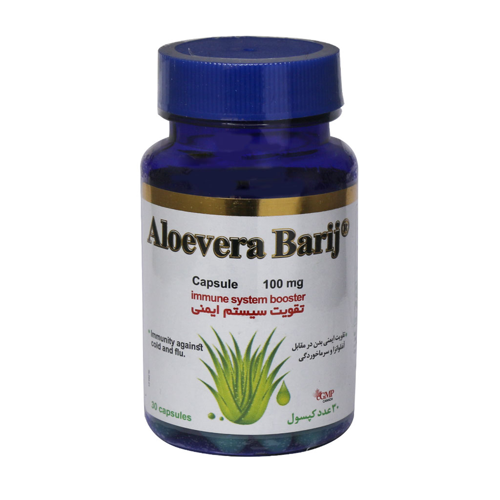 کپسول 100 میلی گرم آلوئه ورا باریج اسانس جهت تقویت سیستم ایمنی فرموله شده است تا به بدن برای مقابله با بیماری های ویروسی از جمله آنفولانزا و سرماخوردگی کمک نماید. این مکمل گیاهی از مواد موثر گیاه آلوئه ورا تهیه شده است. ژل آلوئه وار دارای بیش از 200 ماده فعال از نظر بیولوژیک است. از ژل آلوئه وار برای تقویت، حفظ سلامتی و مقاصد درمانی از جمله مبارزه با سندروم نقص ایمنی اکتسابی (ایدز)، آلرژی ها و بهبود سیستم ایمنی استفاده می‌شود.