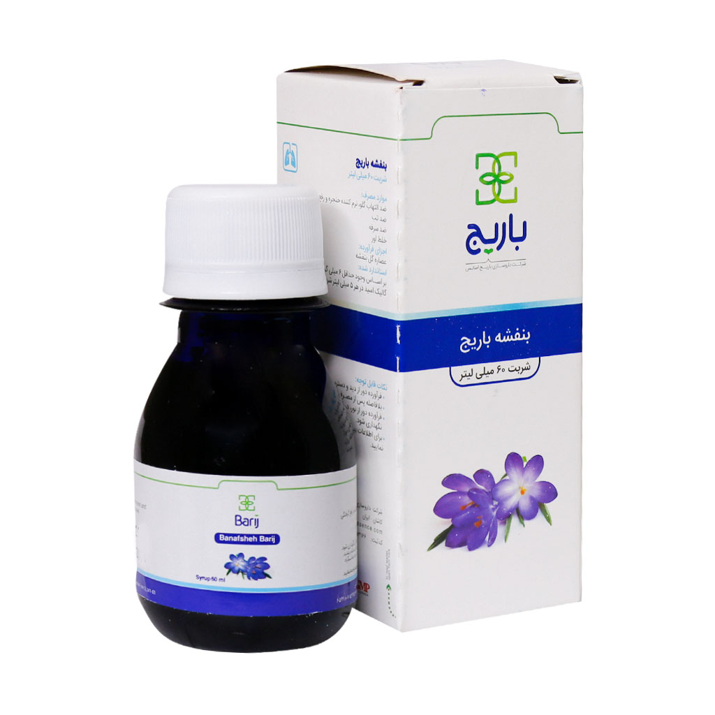 شربت بنفشه باریج اسانس حاوی عصاره گل بنفشه و شکر سرخ می باشد که در درمان سرماخوردگی، سرفه و تب مورد استفاده قرار می گیرد، این فرآورده خلط آور بوده و باعث نرم شدن حنجره می گردد و گرفتگی صدا را نیز برطرف می نماید.