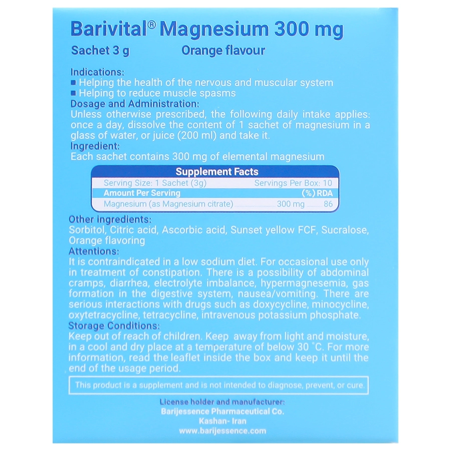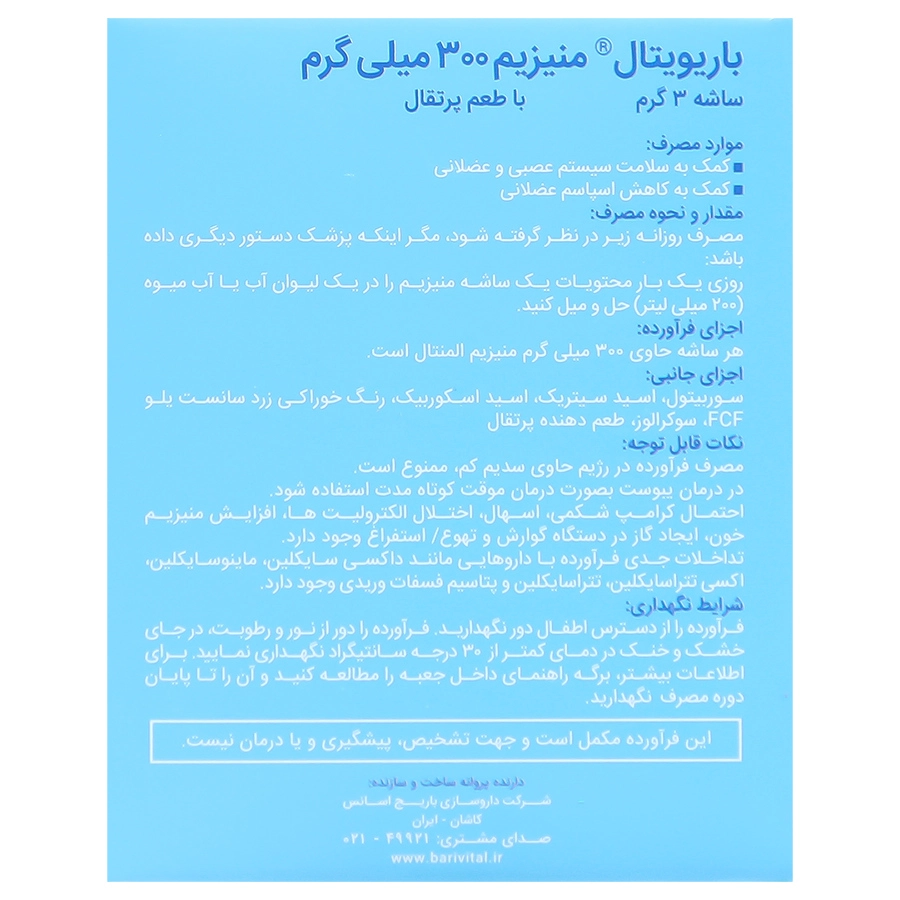 پودر منیزیم 300 میلی گرم باریویتال 10 ساشه