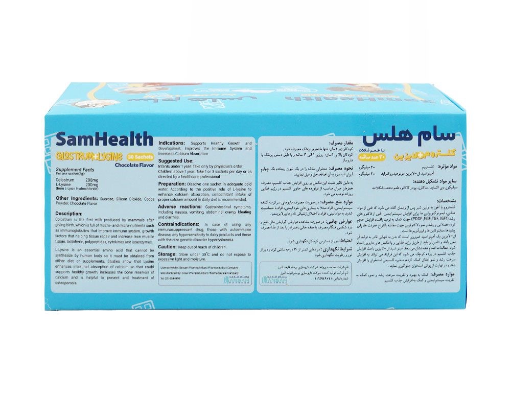 هر ساشه سام هلس حاوی 200 میلی گرم کلستروم است.