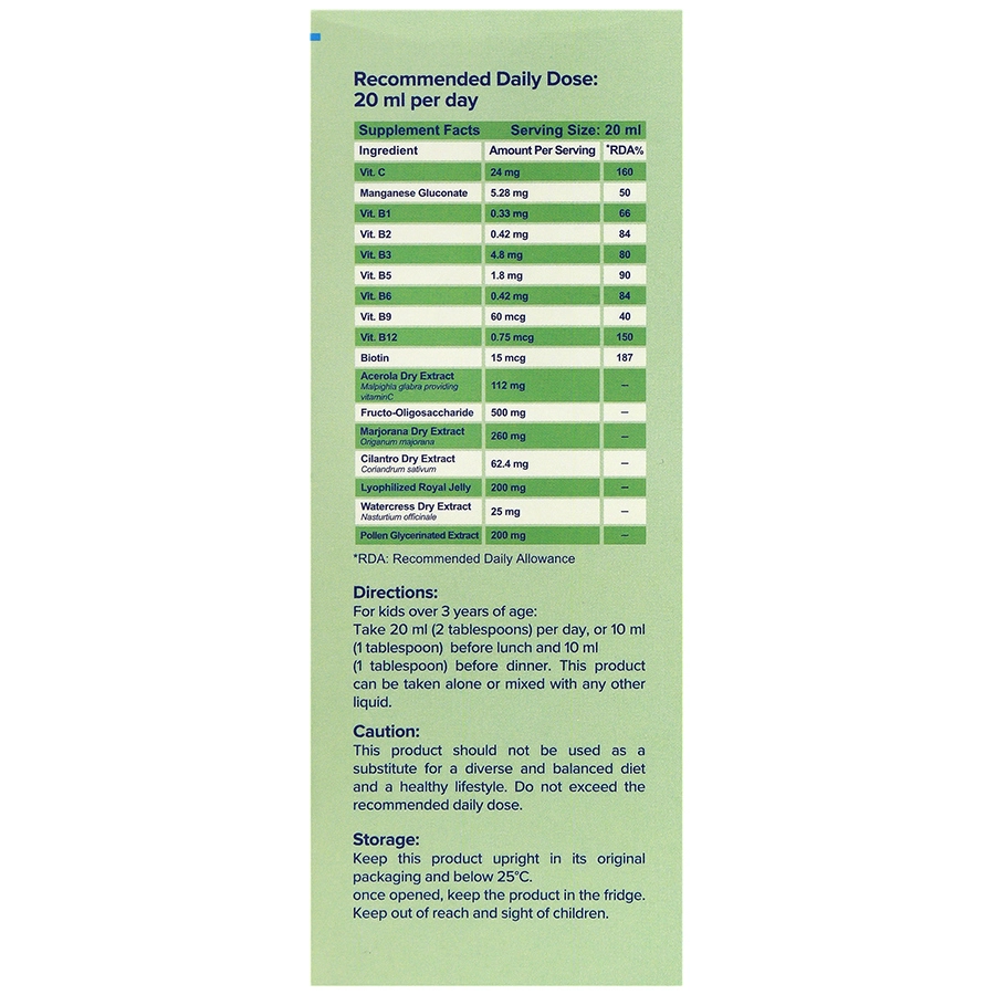 برای کودکان بالای 3 سال، روزانه 2 قاشق غذاخوری (20 میلی لیتر)، یا 1 قاشق غذاخوری (10 میلی لیتر) قبل از ناهار و 1 قاشق غذاخوری (10 میلی لیتر) قبل از ناهار و 1 قاشق غذاخوری قبل از شام میل شود. این شربت میتواند به تنهایی یا همراه مایعات دیگر مصرف شود.