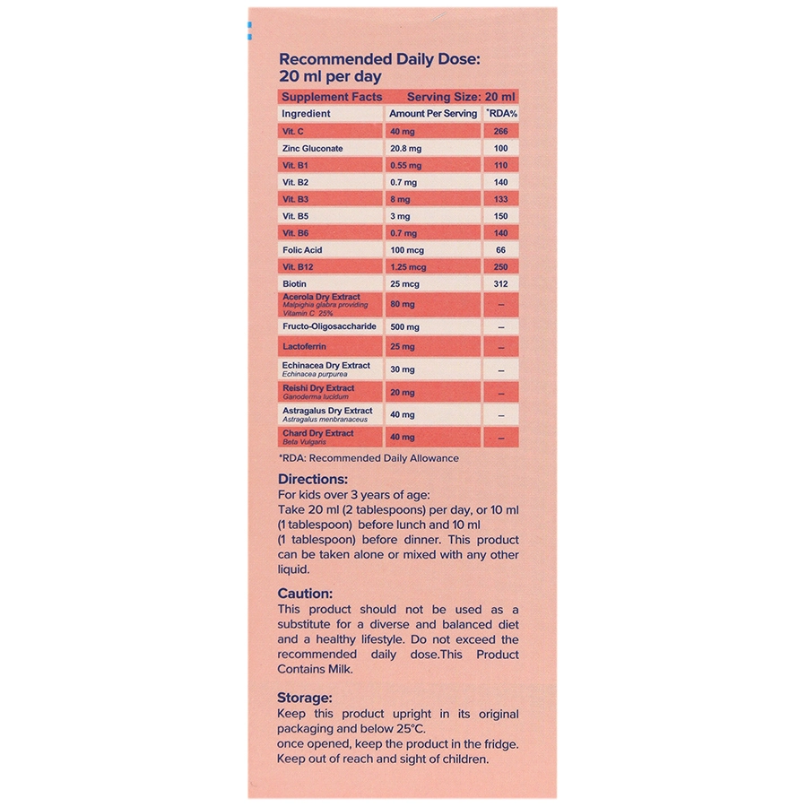 برای کودکان بالای 3 سال، روزانه 2 قاشق غذاخوری (20 میلی لیتر)، یا 1 قاشق غذا خوری (10 میلی لیتر) قبل از ناهار و 1 قاشق غذاخوری قبل از شام میل گردد. این شربت می‌تواند به تنهایی یا همراه مایعات دیگر مصرف شود.