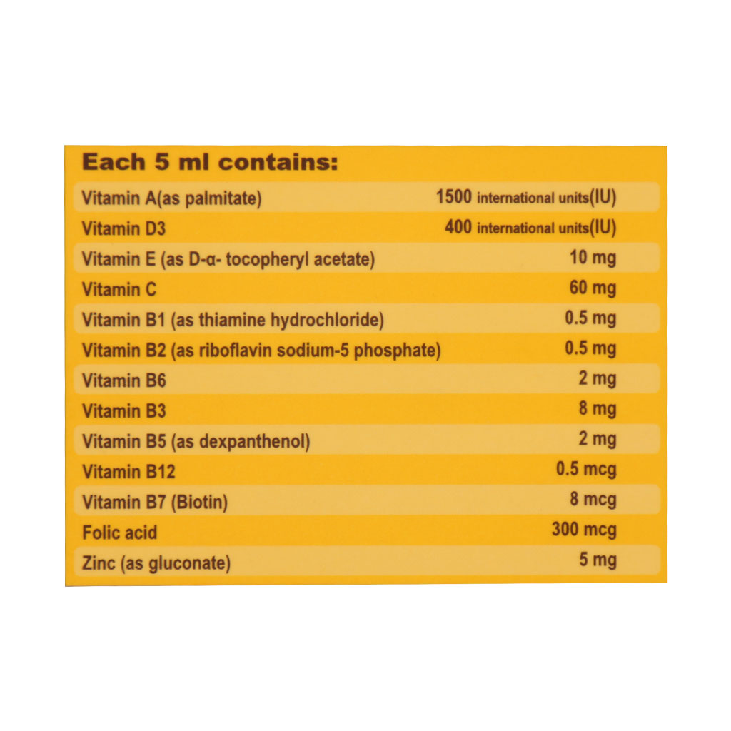 شربت عسل + مولتی ویتامین + زینک خوارزمی روزانه 5 میلی لیتر در کودکان بالای 2 سال و بزرگسالان استفاده شود.
