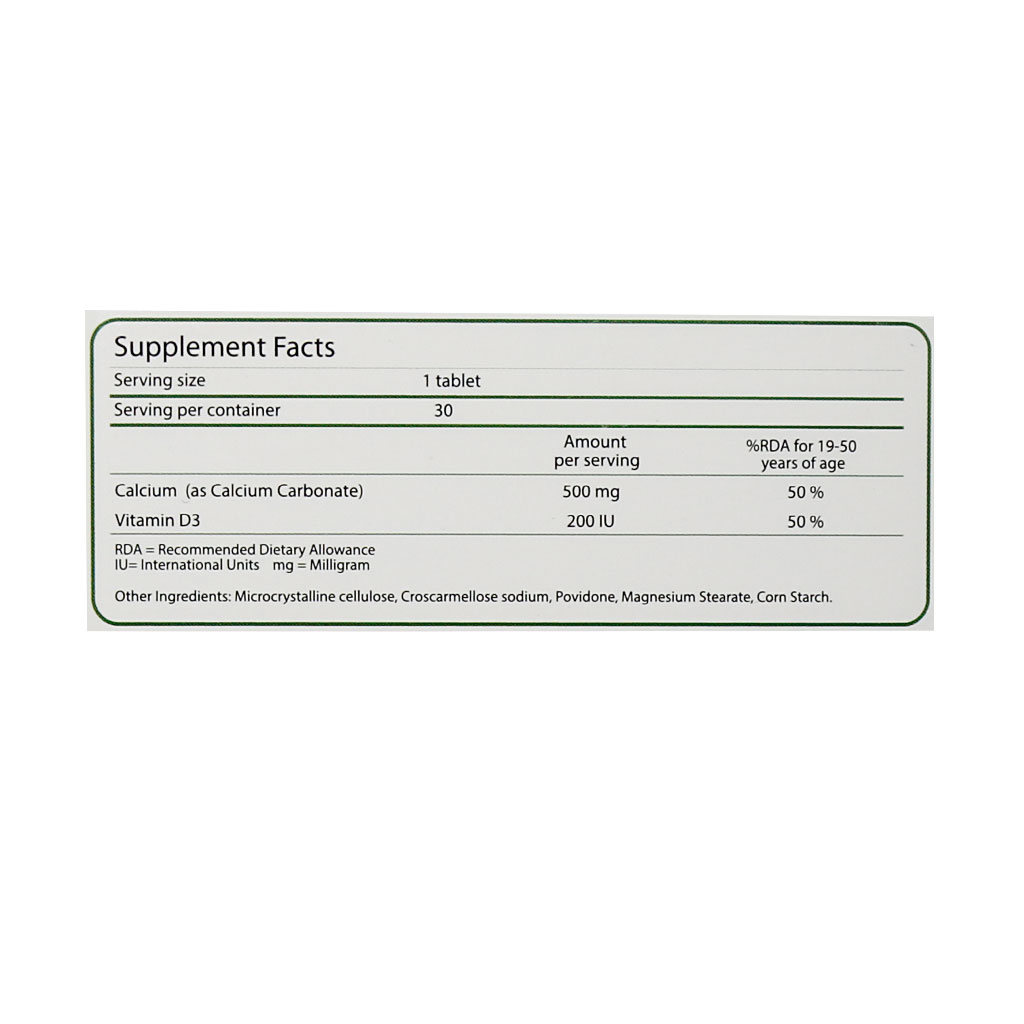 | کلسیم(از نوع کربنات) | 500mg | 50% |