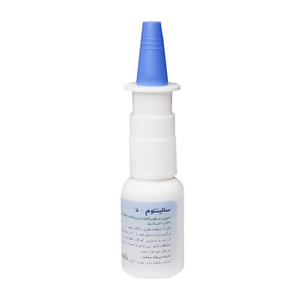 اسپری بینی سالینتوم د بهشاد دارو یک فرآورده دارویی است که برای شستشو و مرطوب کردن مخاط بینی، التیام بخشی مخاط بینی و درمان کمکی گرفتگی بینی و سرماخوردگی به کار میرود. دکسپانتنول آنالوگ الکلی پانتوتنیک اسید است و فعالیت بیولوژیکی مشابهی با پانتوتنیک اسید دارد. اسید پانتوتنیک و نمکهای آن، ویتامینهای محلول در آب هستند که به عنوان کوآنزیم A در فرآیند متابولیسم نقش دارند. همچنین این اسپری بینی به مرطوب کردن مخاط بینی خشک کمک میکند. دکسپانتنول موجب بازسازی سلولهای اپیتلیال اسیب دیده مخاط بینی میشود. در موارد مصرف موضعی دکسپانتنول میتواند نیاز پوست و یا غشاهای مخاطی به اسید پانتوتنیک را برطرف و به تسریع بهبود زخم کمک کند. با خرید محصولات حلق و بینی میتوانید زمستانی خوب همراه با سلامتی را سپری کنید.