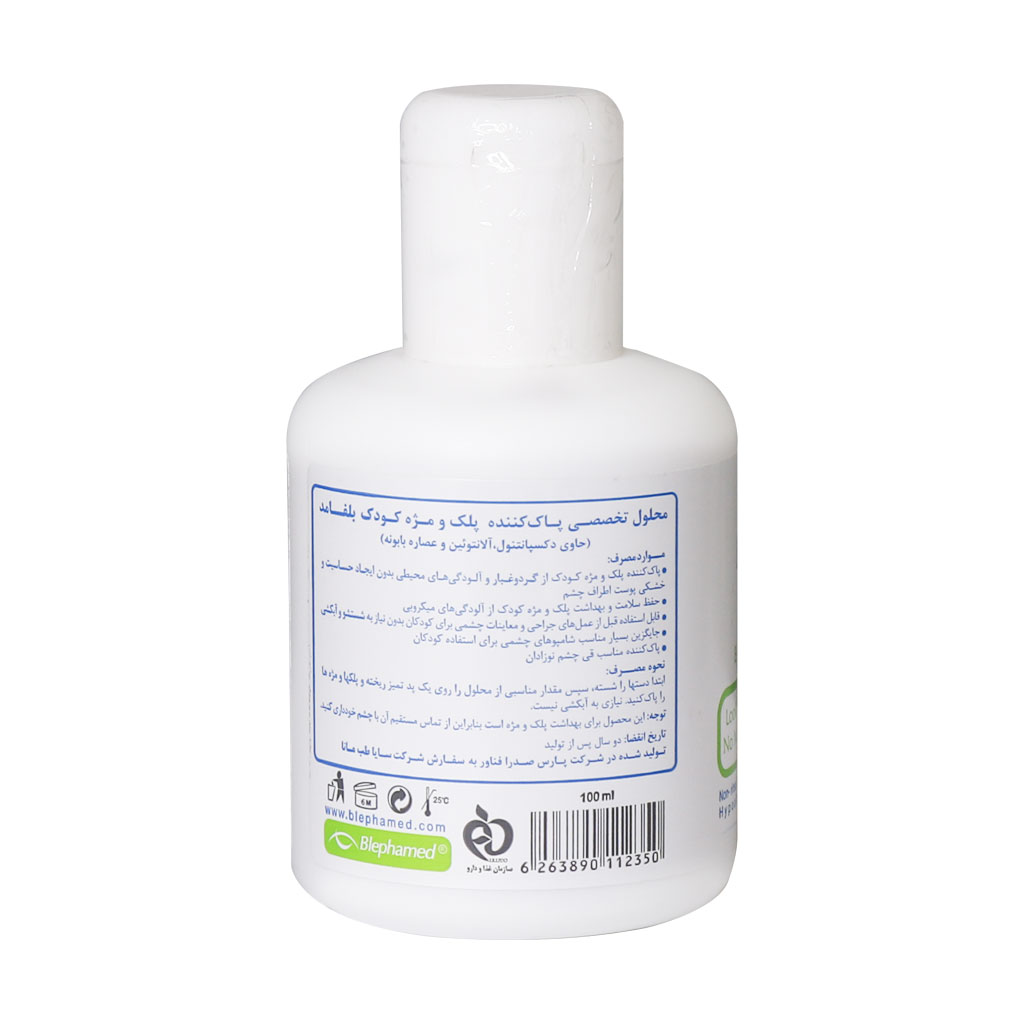 محلول تخصصی پاک کننده پلک و مژه کودک بلفامد شوینده مناسب جهت پاک کردن گرد و غبار و آلودگی از پلک و مژه است. همچنین یک پاک کننده مناسب قی چشم نوزادان است.