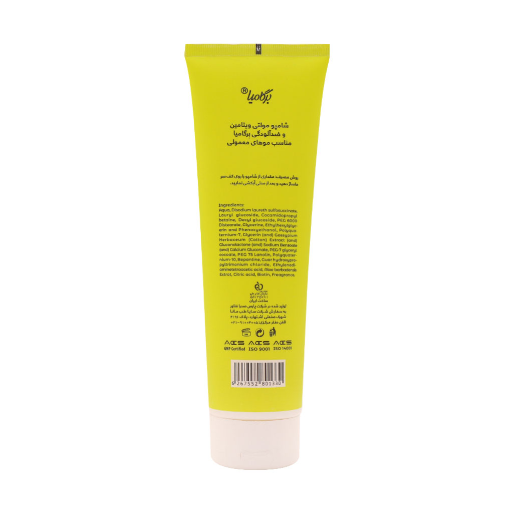 شامپو مولتی ویتامین و ضدآلودگی برگامیا مناسب موهای معمولی 250 میلی لیتر