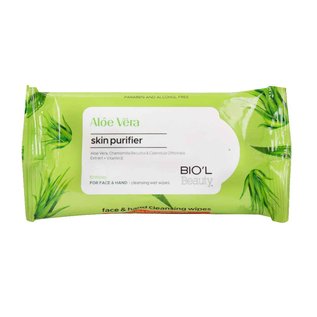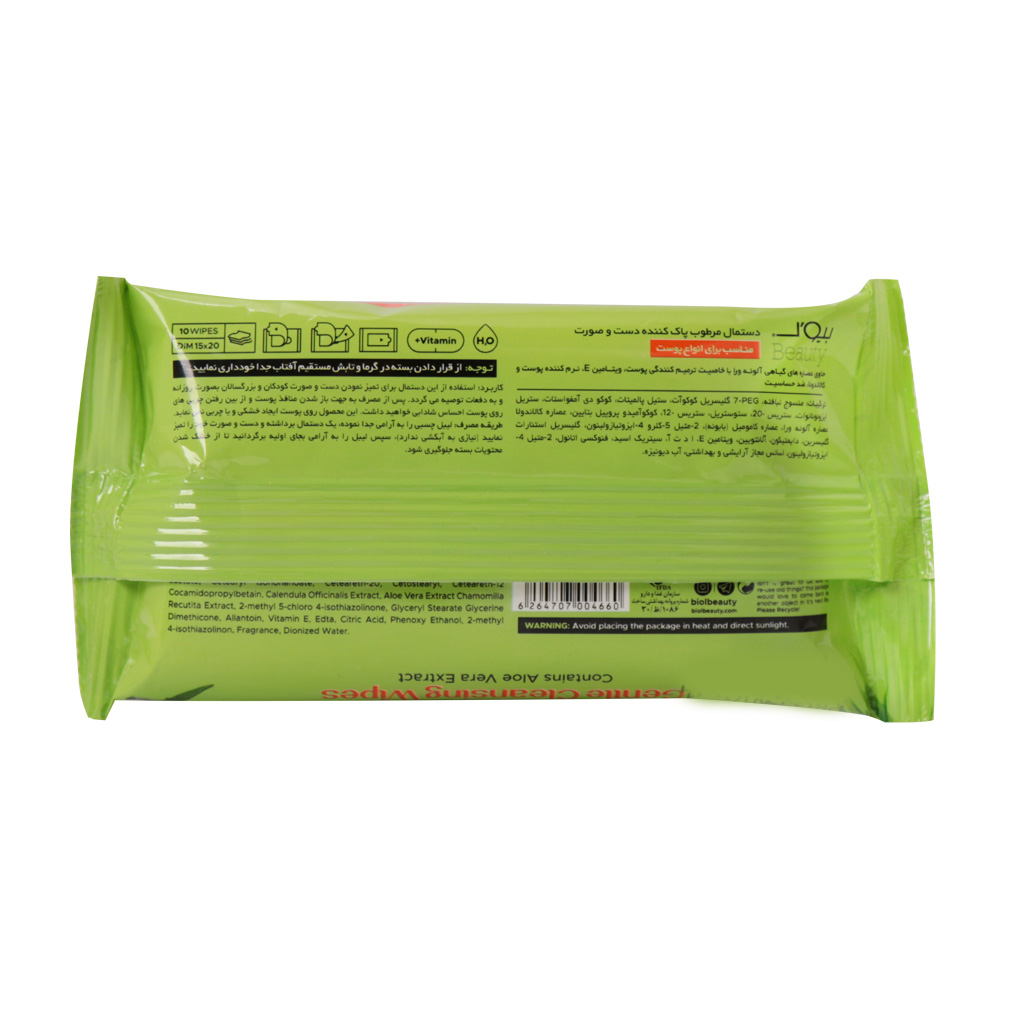 دستمال مرطوب پاک کننده دست و صورت آلوئه ورا بیول 10 عدد