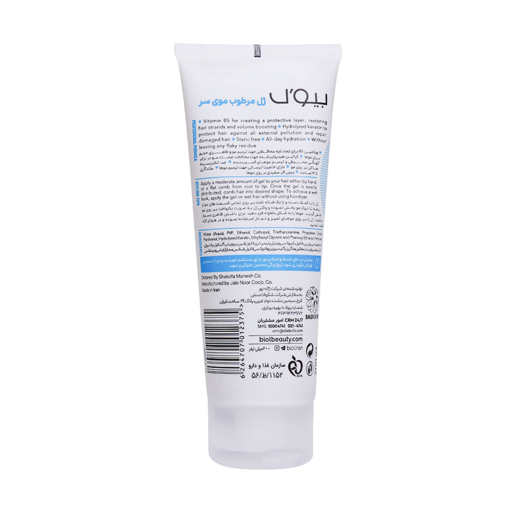 کارایی ژل حالت دهنده موی مرطوب بیول تنها به زیبایی مو ختم نمی‌شود. بلکه تولیدکنندگان این محصول به سلامت مو را نیز در نظر گرفته و در ترکیبات این محصول از ویتامین B5، کراتین هیدرولیز شده و پروتیین نیز استفاده شده است. ویتامین B5 موجود در این ژل، در هنگام حالت پذیری برروی تارهای مو، حجم دلخواه را برروی گیسوان ایجاد می‌نماید. کراتین هیدرولیز شده در این ژل با تکمیل کار آبرسانی تار های مو  و احیای آسیب‌های ناشی از آلودگی‌های محیطی وارد شده بر کوتیکول‌های مو (قشای محافظ تارهای مو) ، زیبایی و استحکام گیسوان را به ارمغان می‌آورد.