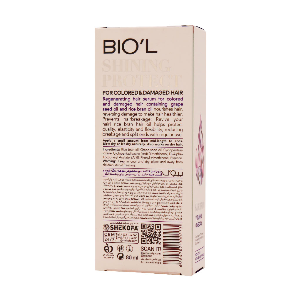 در واقع این سرم از طریق رطوبترسانی، ترمیم سلولهای آسیبدیده مو و افزایش طول عمر آنها، رساند مواد مغذی به تارهای مو و ایجاد یک لایه محافظتی بر روی مو از سلامت موی شما محافظت و مراقبت میکند. همچنین در پر حجم شدن جلوه مو و زیبایی آن نیز کارایی دارد. سرم مو بیول قابل استفاده در هر زمان بخصوص پس از رنگ کردن و یا شستشوی سر است که احساس شادابی، زیبایی و طراوت را به موها میبخشد. اسانس هلوی موجود در این سرم نیز احساس لذتبخشی را برای شما به ارمغان میآورد. این محصول در آلمان فرموله شده و در شرکت ژاله نور به سفارش شرکت شکوفا منش تولید میشود.