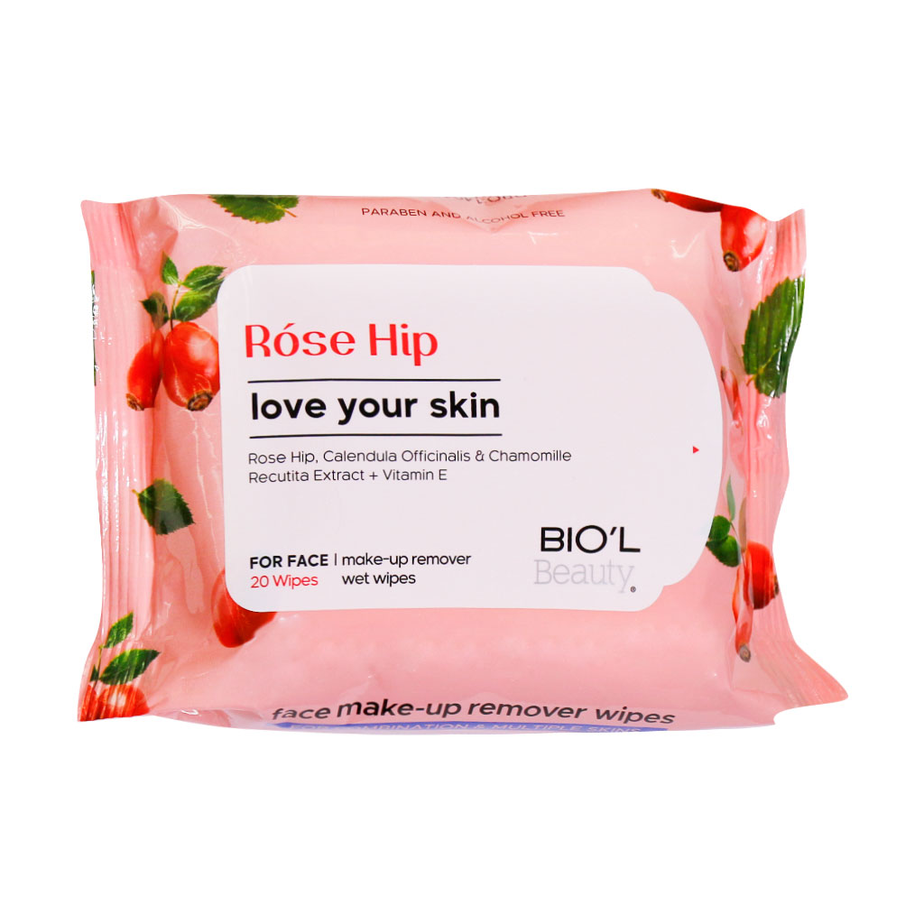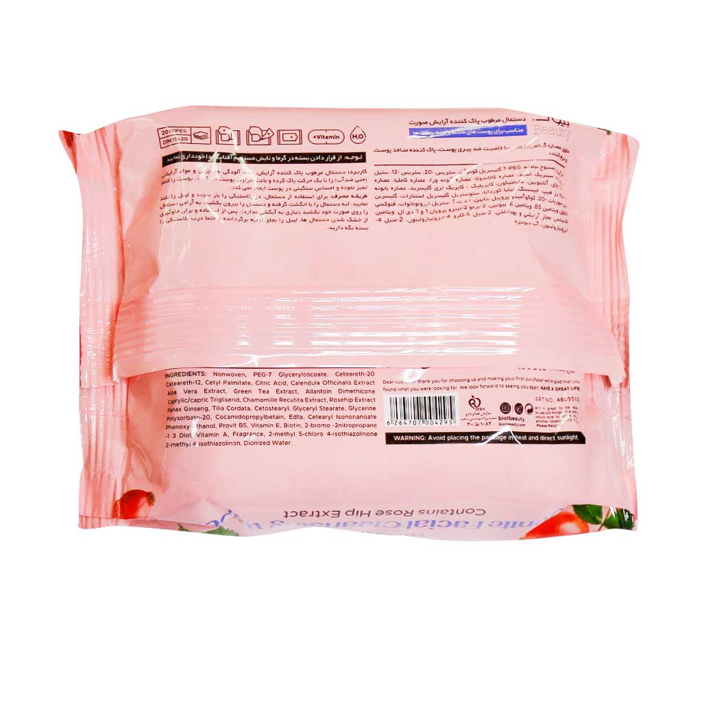 دستمال مرطوب پاک کننده آرایش صورت بیول مدل رزهیپ مناسب انواع پوست 20 عدد
