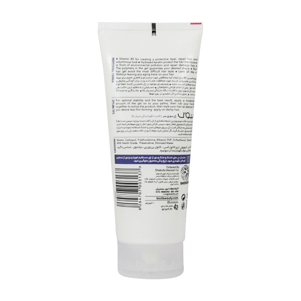 ژل مو بیول با قدرت نگه دارندگی فوق العاده بالا حاوی آرگان و کراتین 200 میلی لیتر