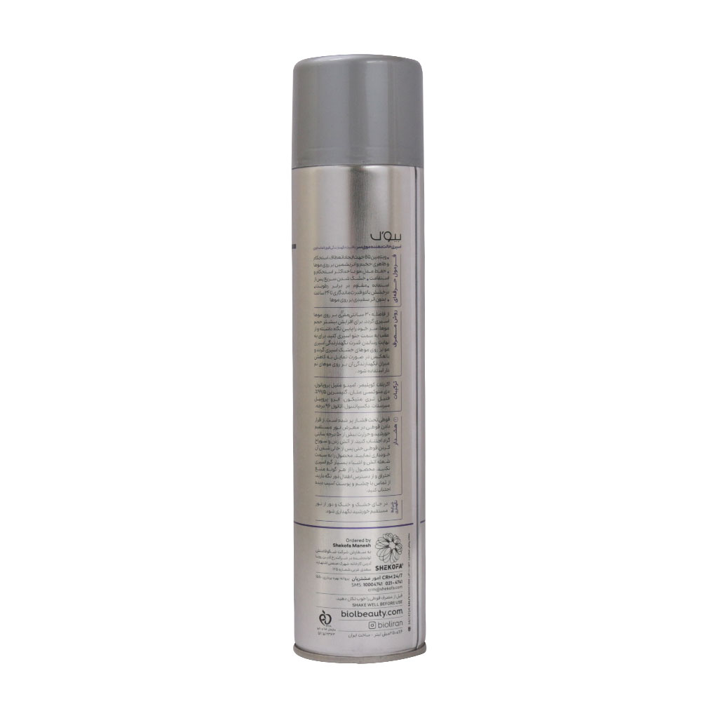 اسپری حالت دهنده بسیار قوی بیول را دور از دسترس اطفال نگهداری کنید.