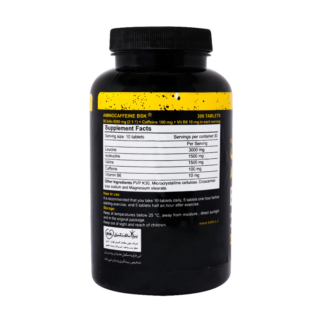 پیشنهاد میشود روزانه 10 قرص آمینو کافیین بی اس کی، 5 عدد یک ساعت قبل تمرین و 5 عدد نیم ساعت بعد تمرین مصرف کنید.