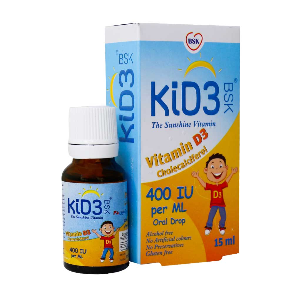 قطره کید ۳ بی اس کی حاوی مقادیر مناسبی از ویتامین Dبود و علاوه بر حفظ عملکرد طبیعی سیستم ایمنی و فعالیت ماهیچه ها، به افزایش جذب کلسیم در روده ها و استخوان ها کمک می کند. کوله کلسیفرول (ویتامین D) یک ویتامین محلول در چربی است که برای سلامتی استخوان ها در طول عمر ضروری است. ویتامین D در معرض نور خورشید در پوست بدن ساخته می شود. افرادی که نور مستقیم خورشید را دریافت نمی کنند (زندگی در مناطق بدون آفتاب، و یا پرهیز از آفتاب به دلیل عوارض نورآفتاب از جمله حساسیت پوستی در کودکان و نوزادان و احتمال بروز سرطان پوست در بزرگسالان، استفاده از کرم های ضدآفتاب و پوشاندن پوست با لباس)، توصیه می شود از مکمل های ویتامین D استفاده نمایند.