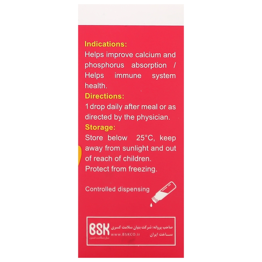 سایر ویژگی های قطره خوراکی ویتامین D3 1000 بی اس کی: