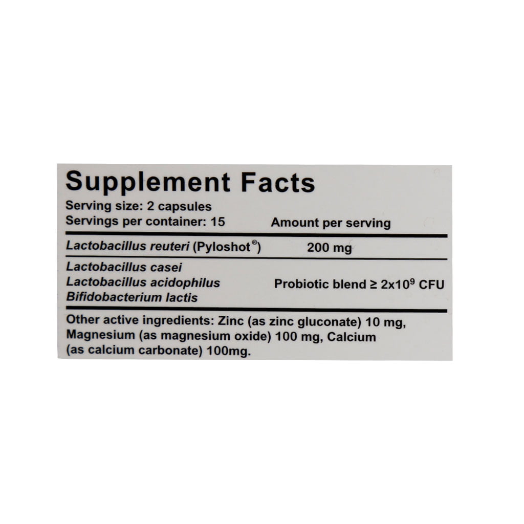 کپسول پایلوشات بی اس کی محصولی پروبیوتیک حاوی لاکتوباسیلوس روتری غیر زنده به همراه سه سویه پروبیوتیک دیگر است که از ابتلا به زخم معده پیشگیری میکند.